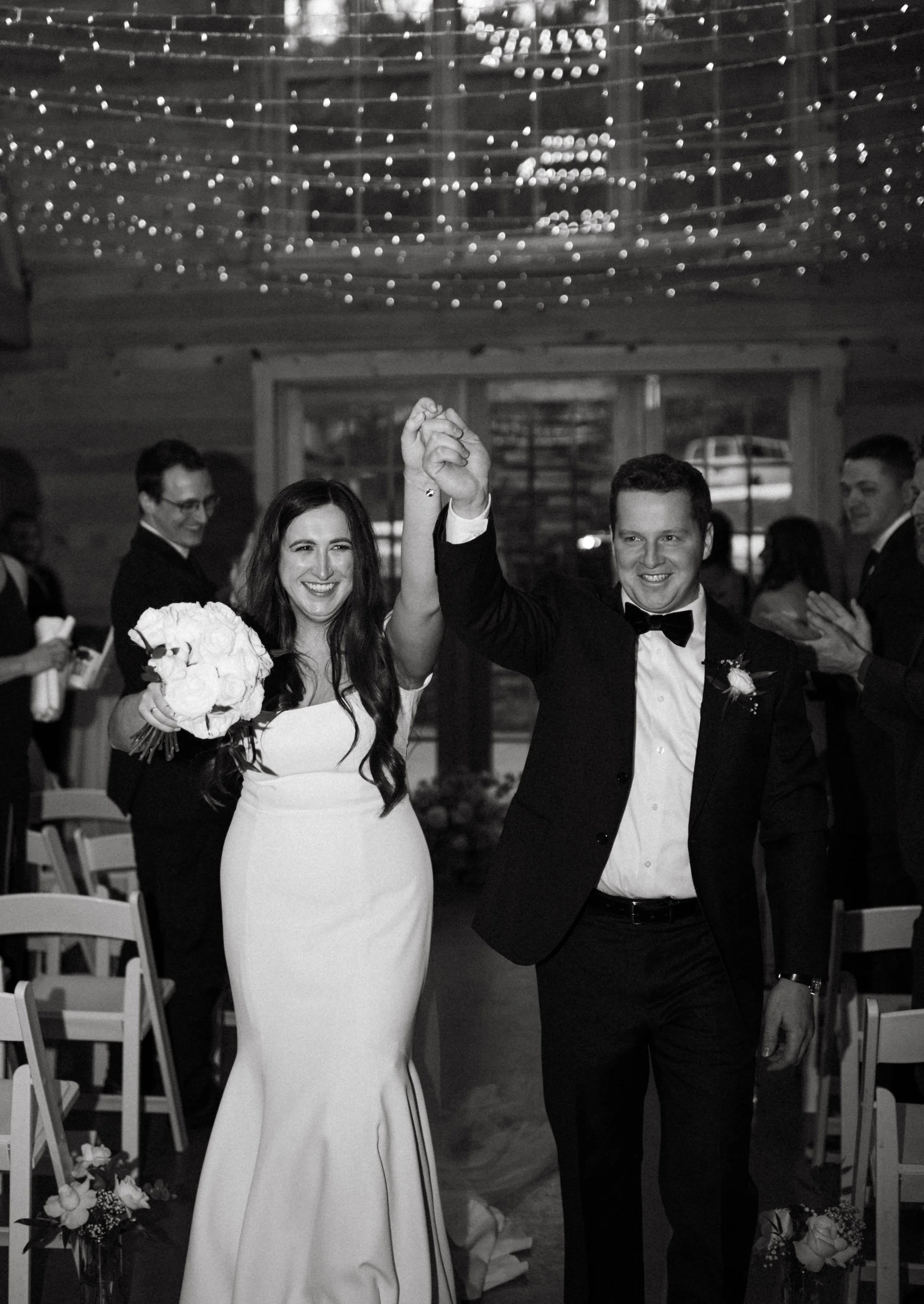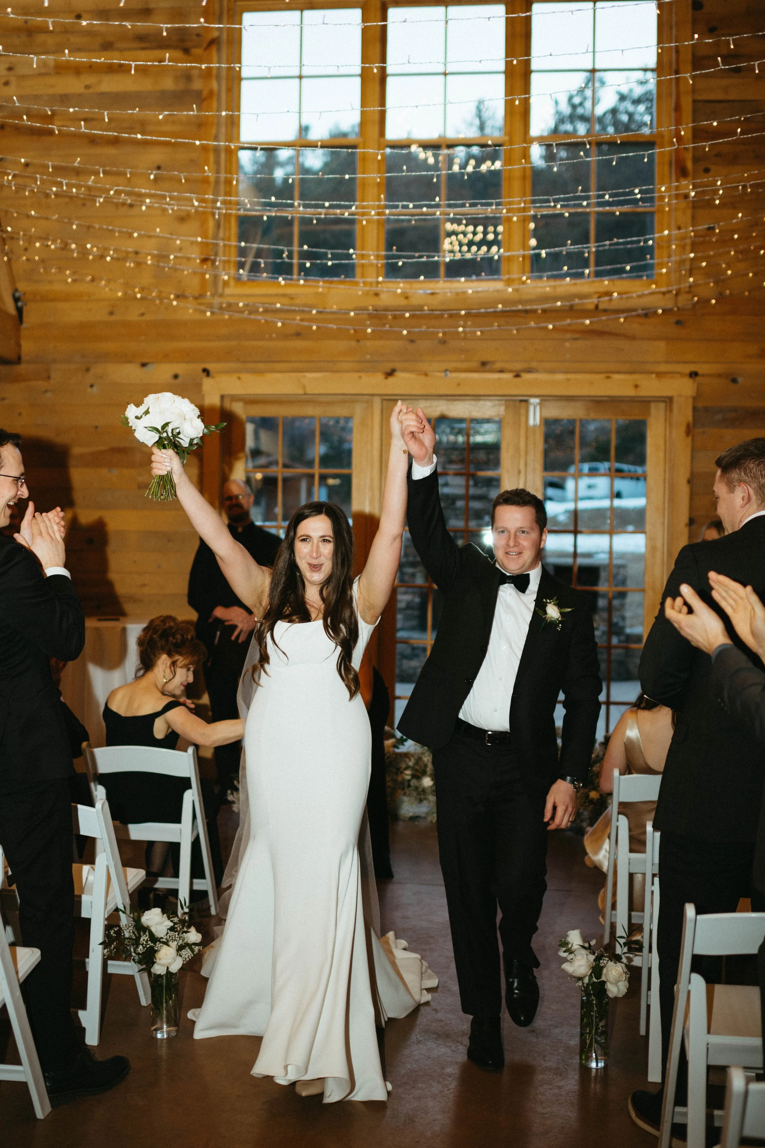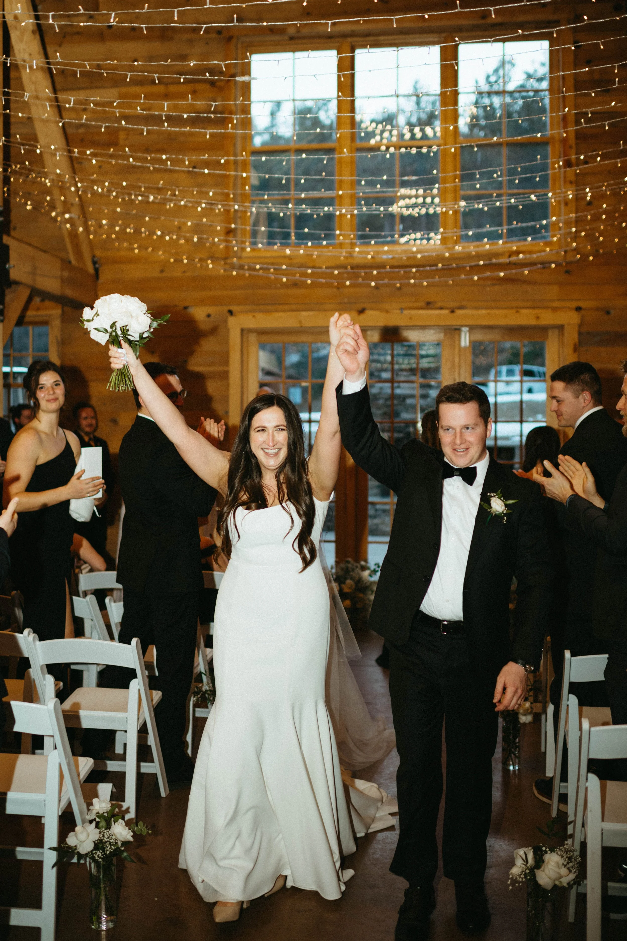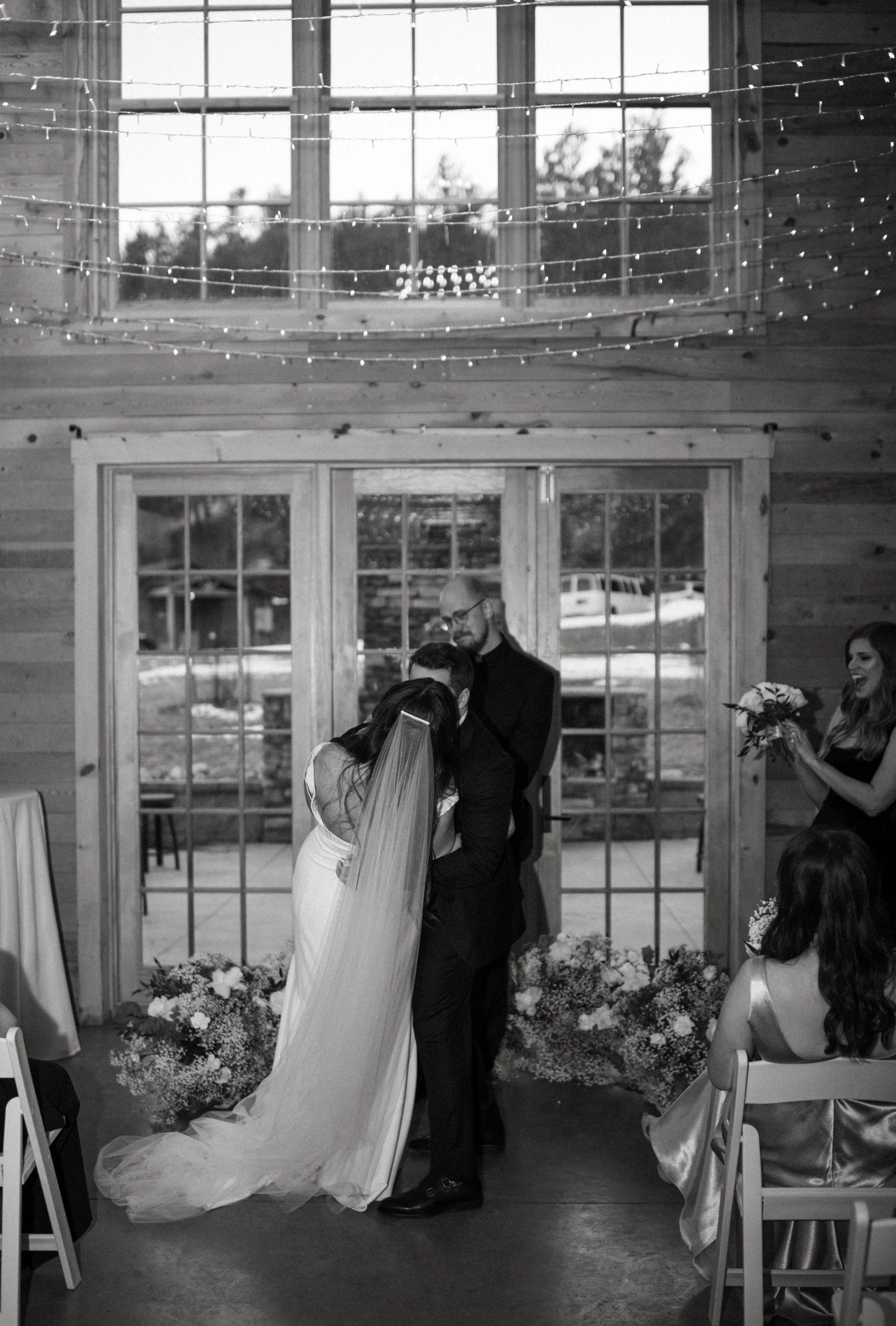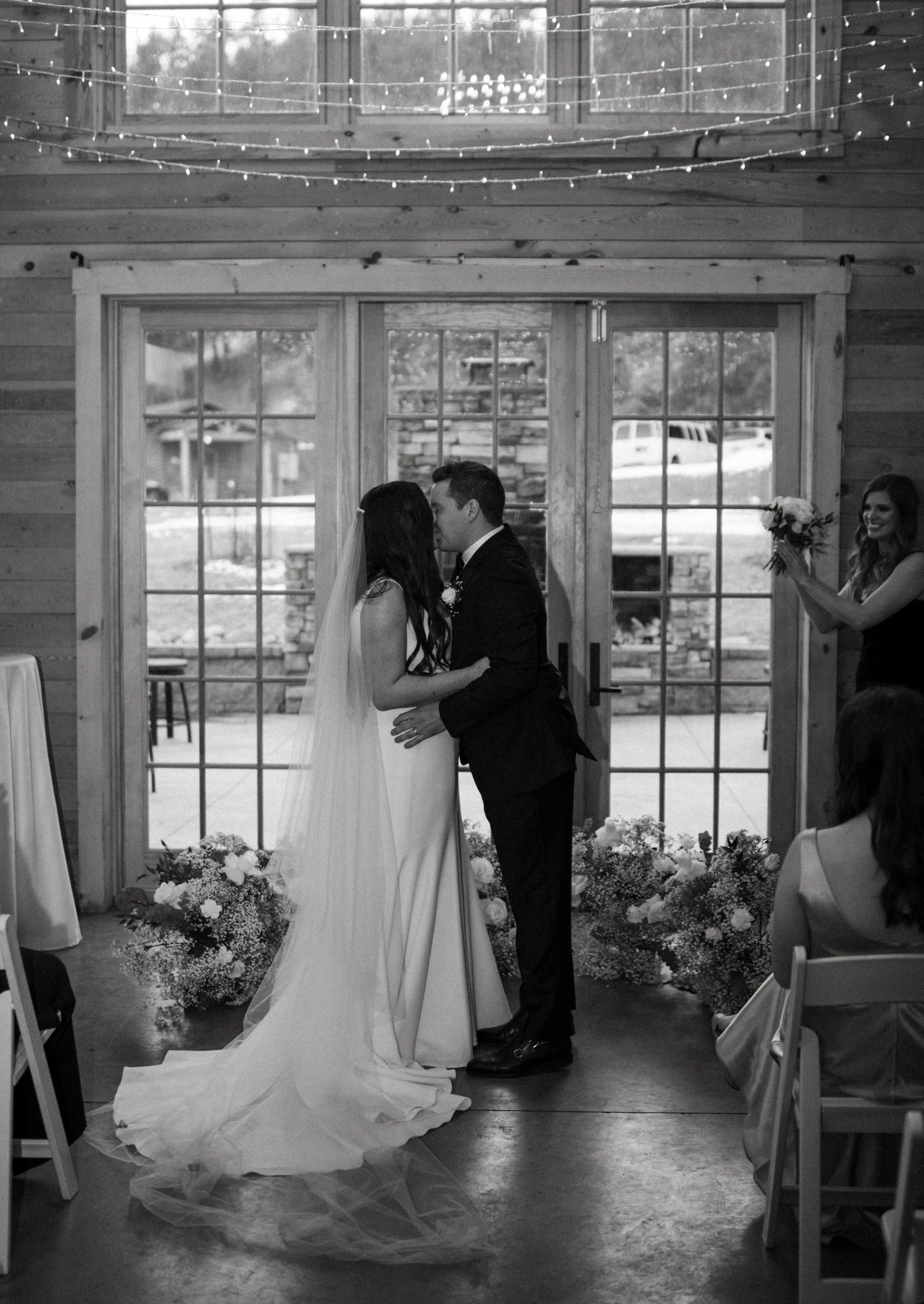 Becca and Peterβs winter wedding at the Custer State Park Game Lodge in the Black Hills of South Dakota was a vision of romance and elegance. The ceremony showcased a breathtaking display of white roses, with a dreamy meadow of baby's breath creating ethereal floral clouds overhead. Amidst the majestic backdrop of roaming buffalo, guests dressed in black tie attire added to the sophisticated atmosphere. Beccaβs elegant bridal bouquet, held with grace, perfectly complemented the refined elegance of the day.