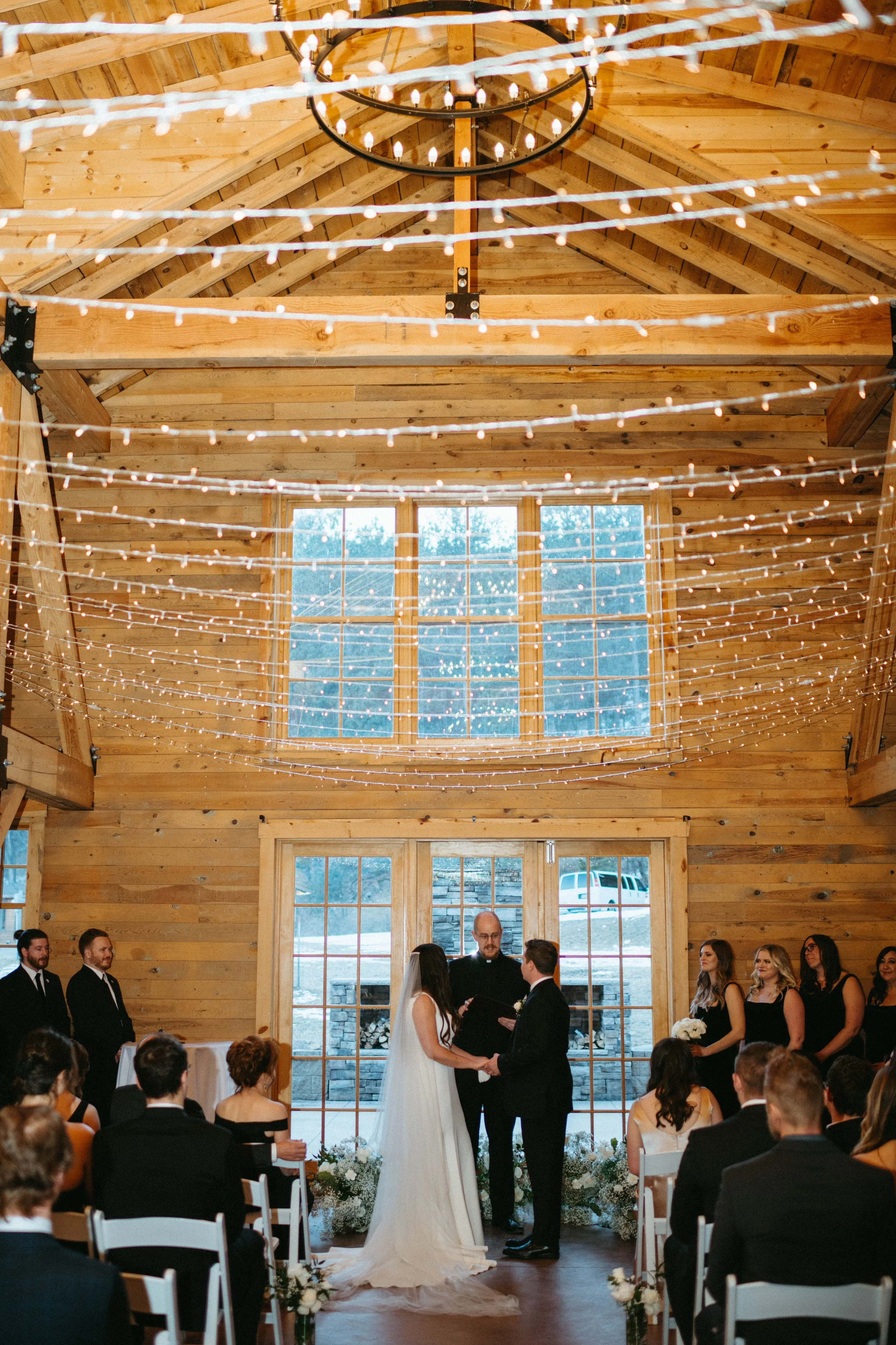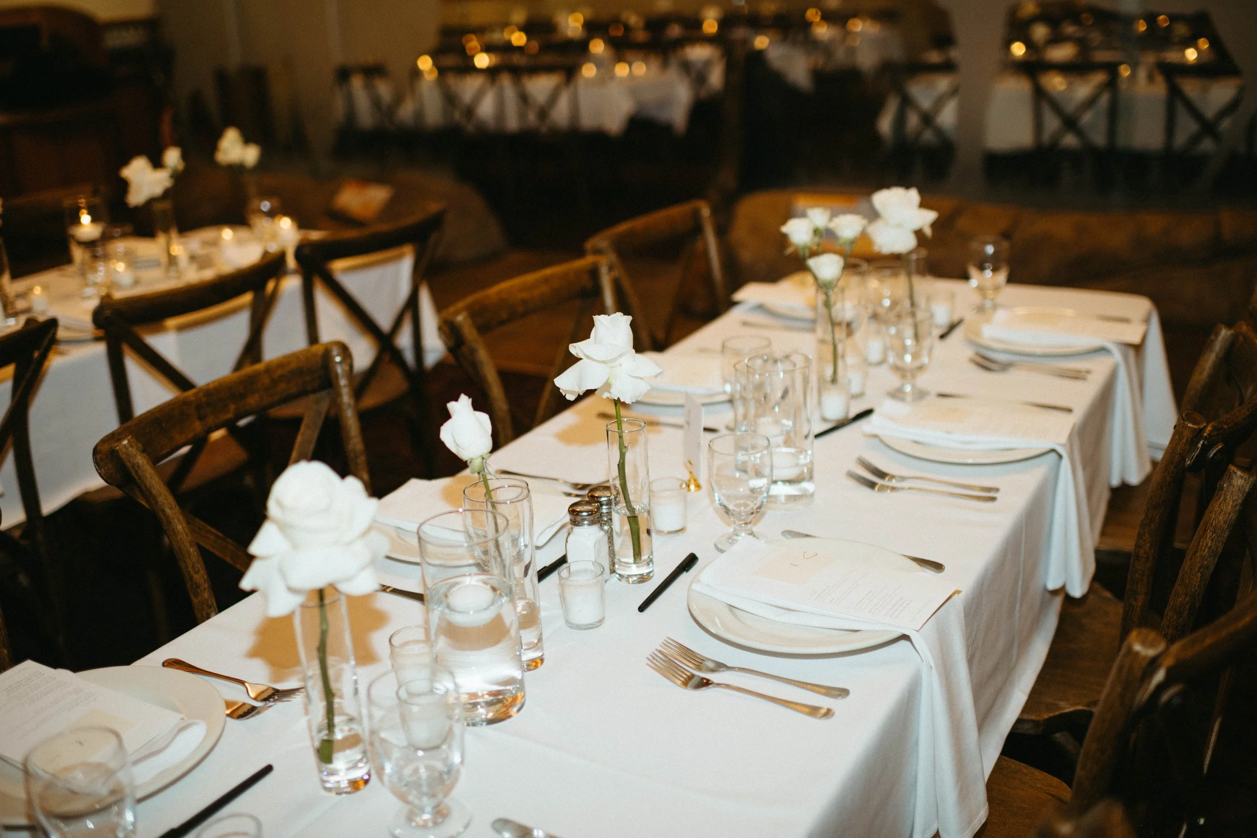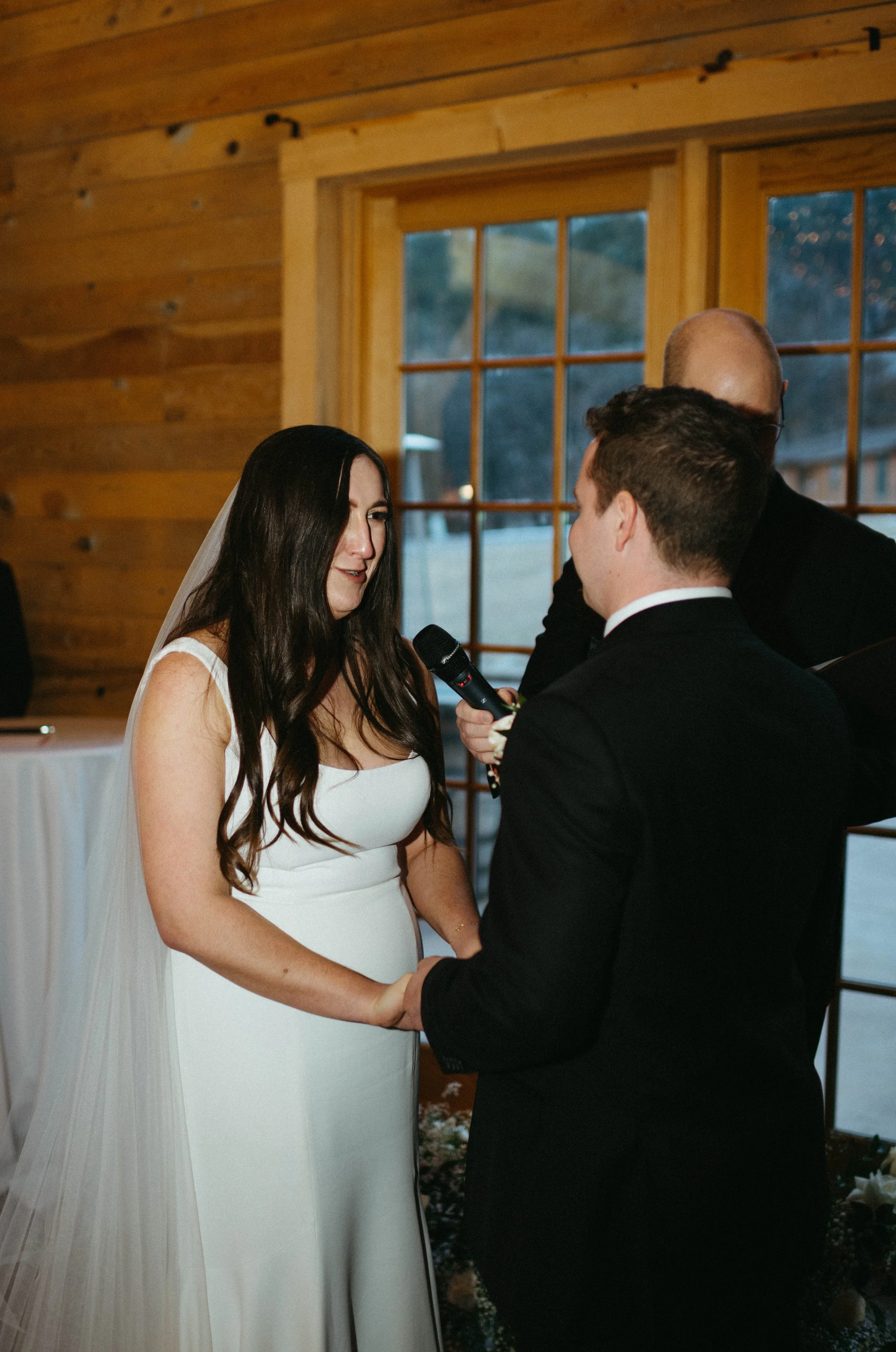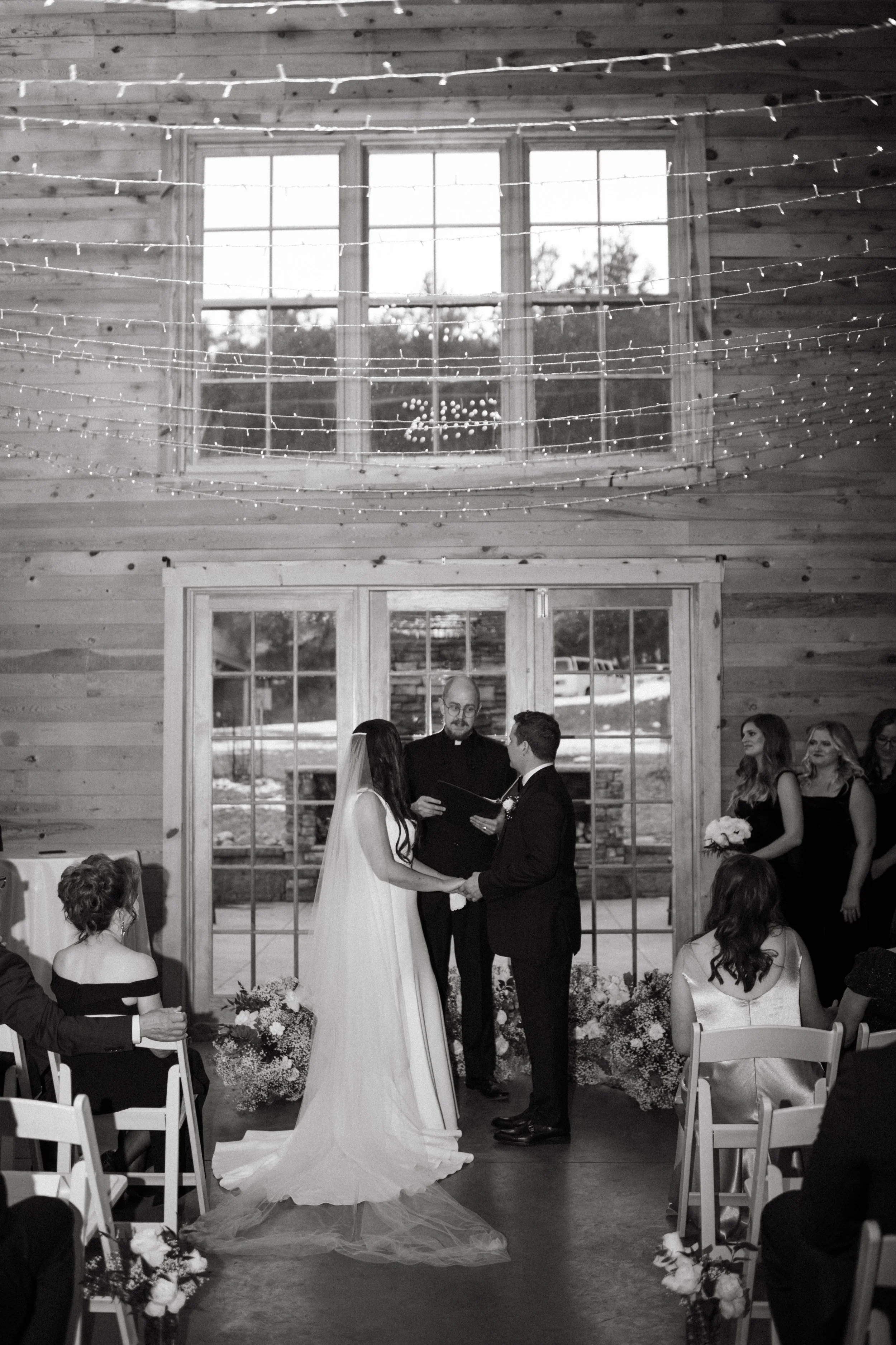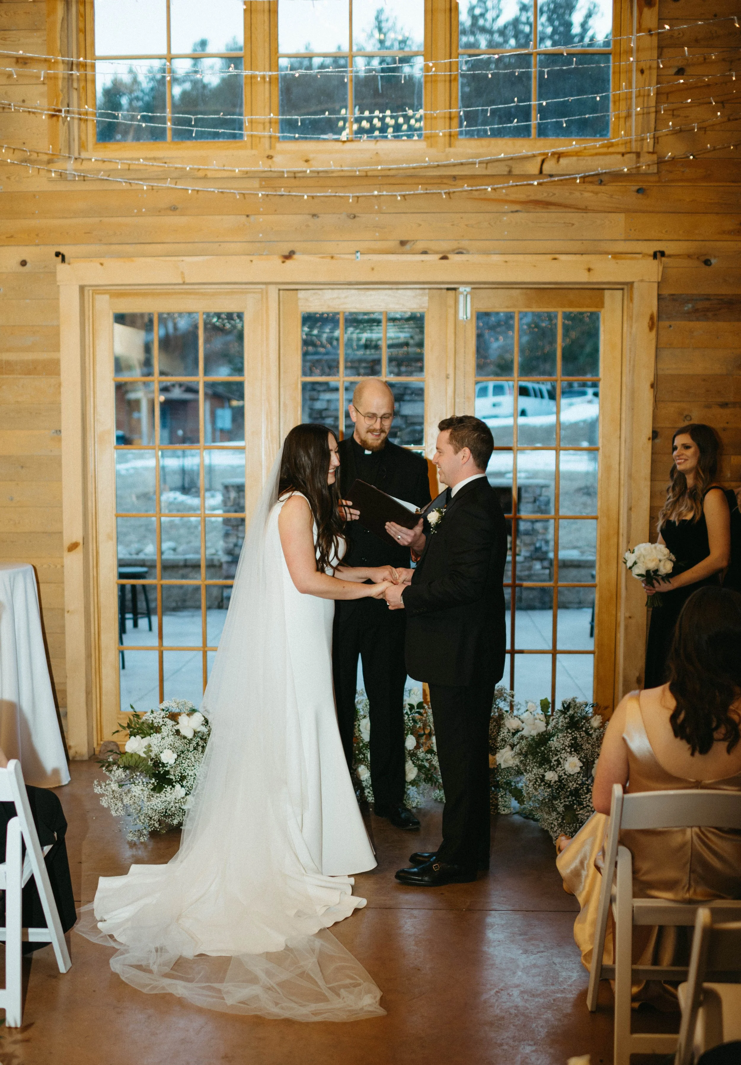 Becca and Peterβs winter wedding at the Custer State Park Game Lodge in the Black Hills of South Dakota was a vision of romance and elegance. The ceremony showcased a breathtaking display of white roses, with a dreamy meadow of baby's breath creating ethereal floral clouds overhead. Amidst the majestic backdrop of roaming buffalo, guests dressed in black tie attire added to the sophisticated atmosphere. Beccaβs elegant bridal bouquet, held with grace, perfectly complemented the refined elegance of the day.