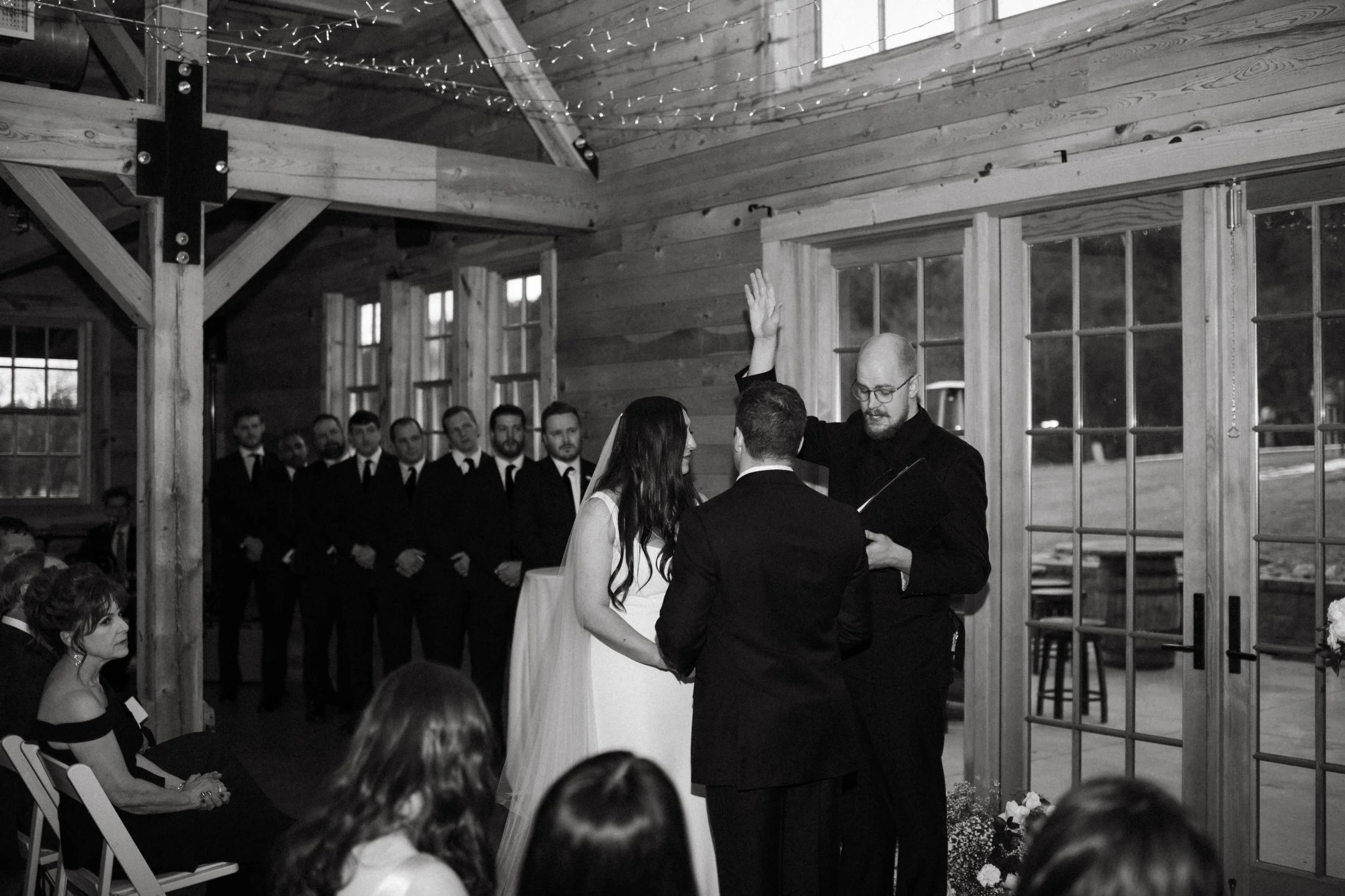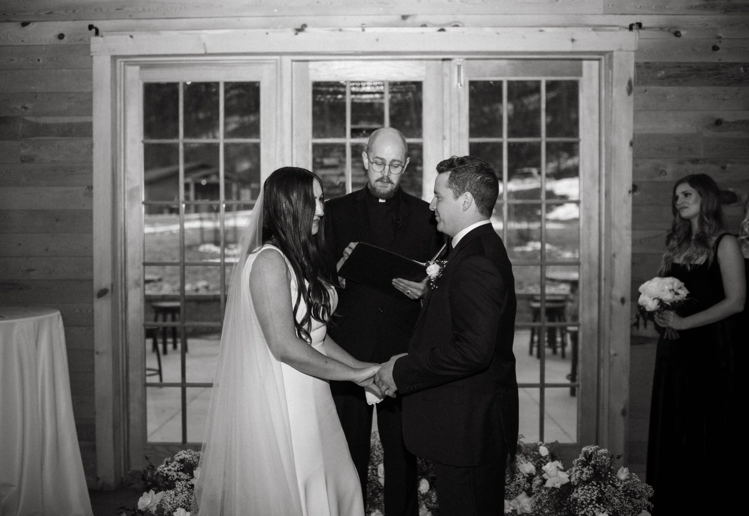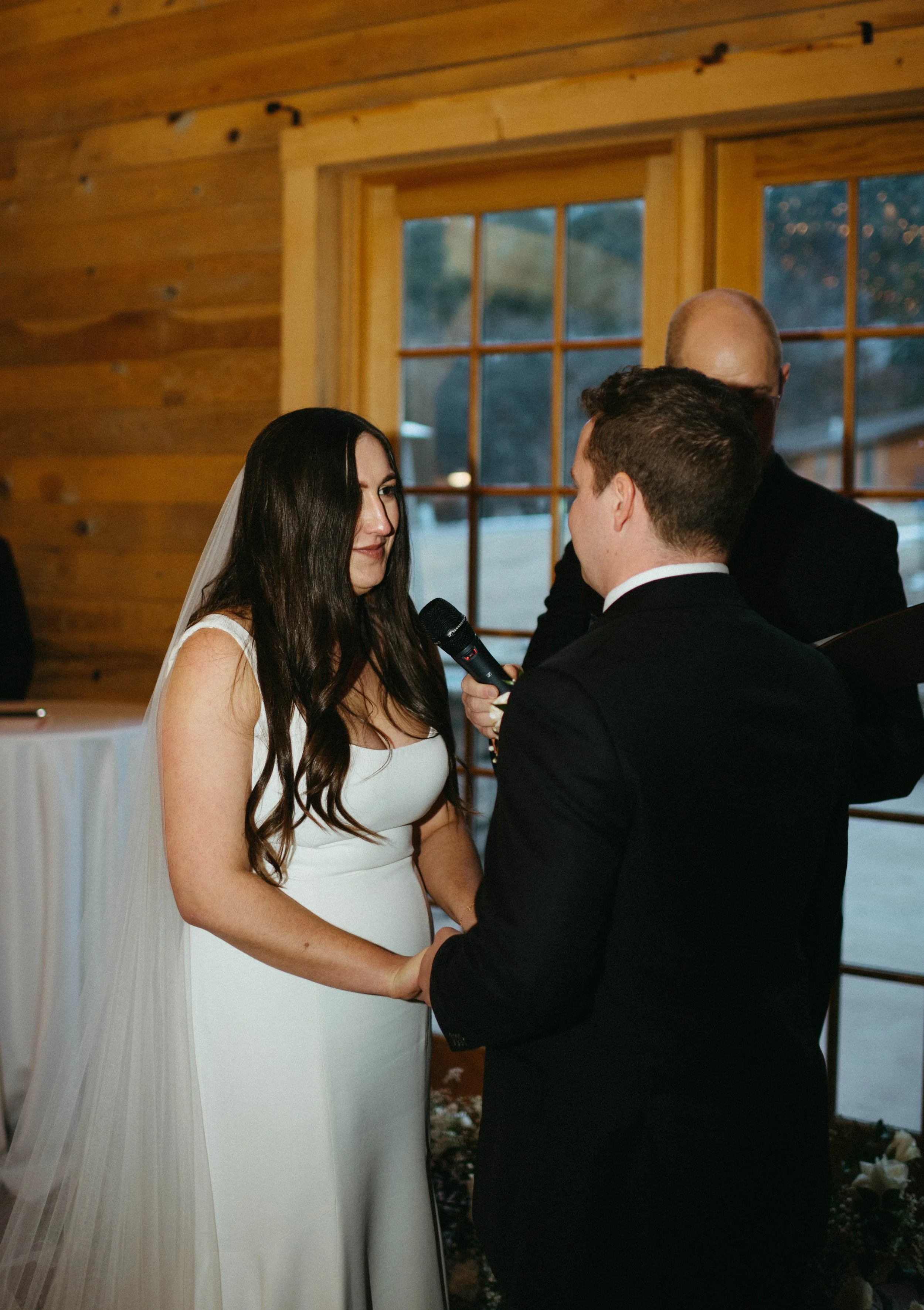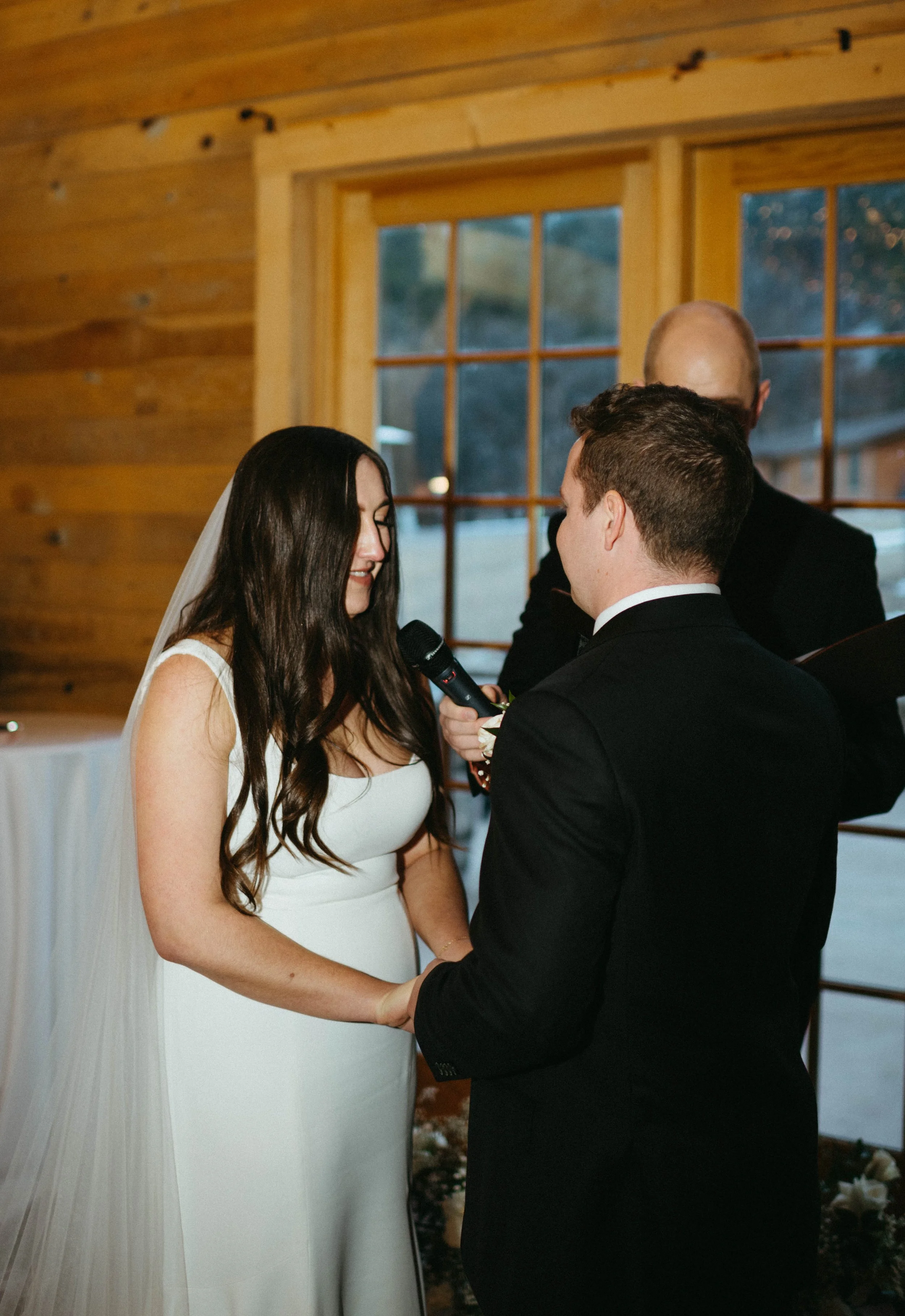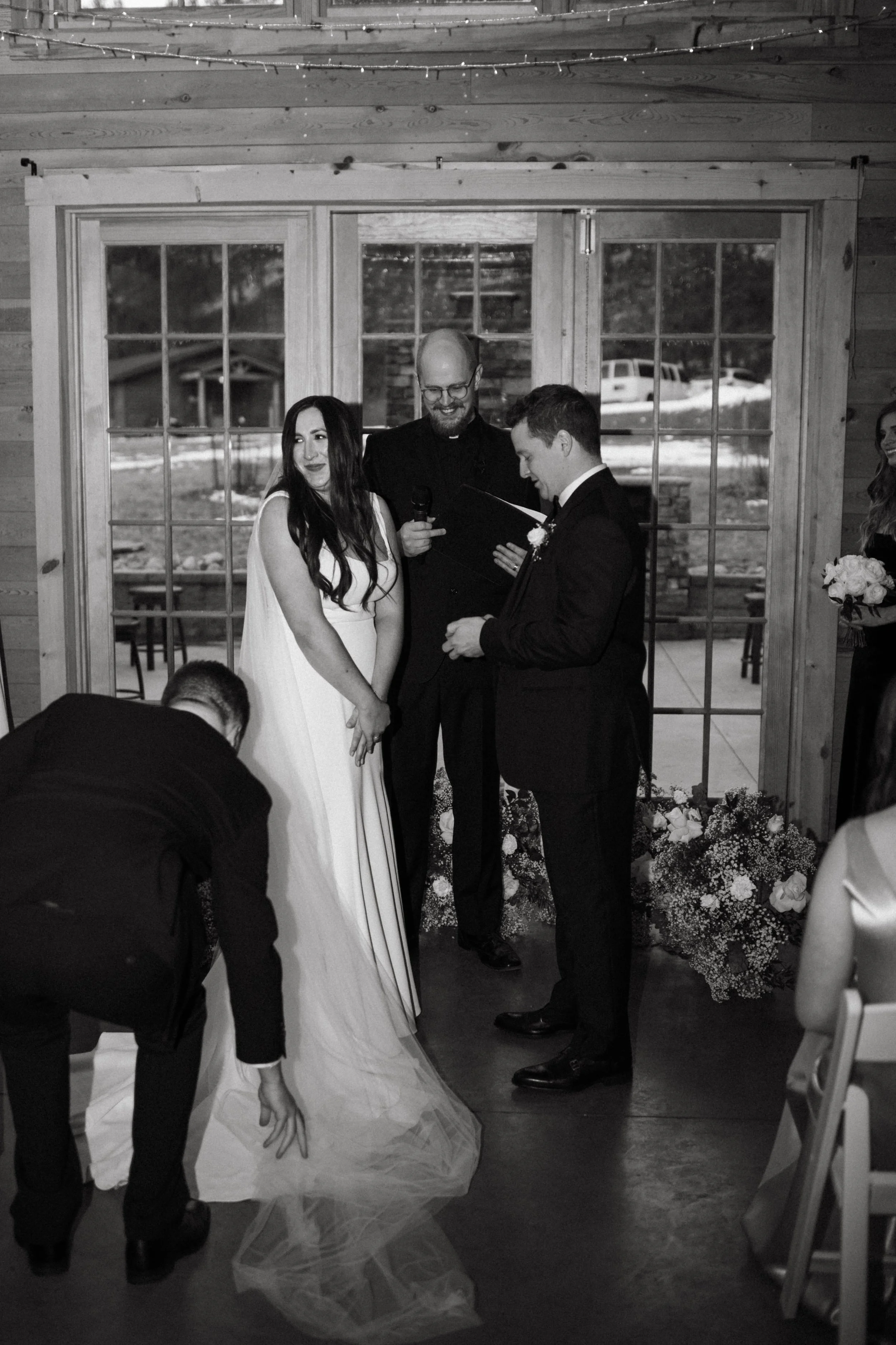 Becca and Peterβs winter wedding at the Custer State Park Game Lodge in the Black Hills of South Dakota was a vision of romance and elegance. The ceremony showcased a breathtaking display of white roses, with a dreamy meadow of baby's breath creating ethereal floral clouds overhead. Amidst the majestic backdrop of roaming buffalo, guests dressed in black tie attire added to the sophisticated atmosphere. Beccaβs elegant bridal bouquet, held with grace, perfectly complemented the refined elegance of the day.
