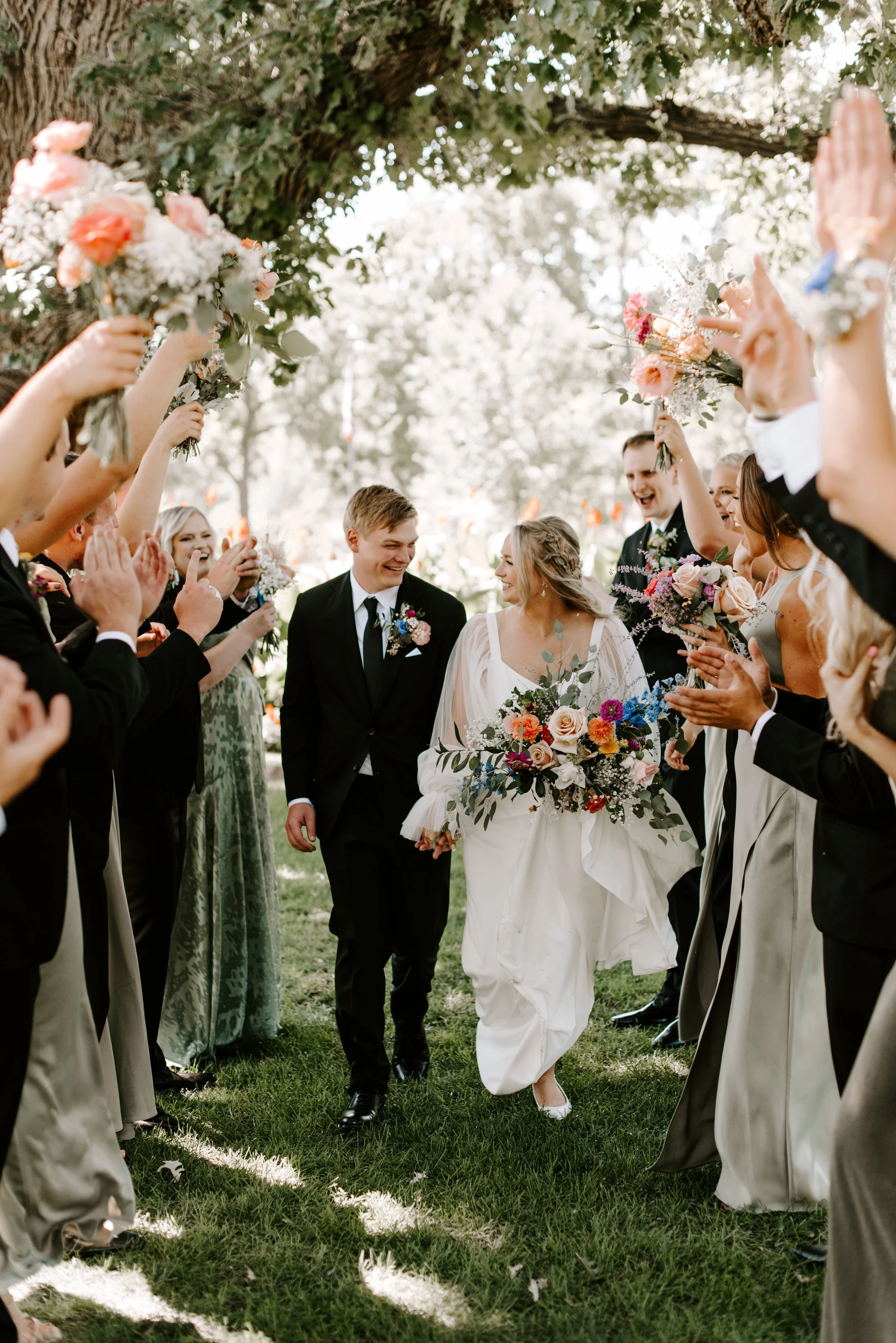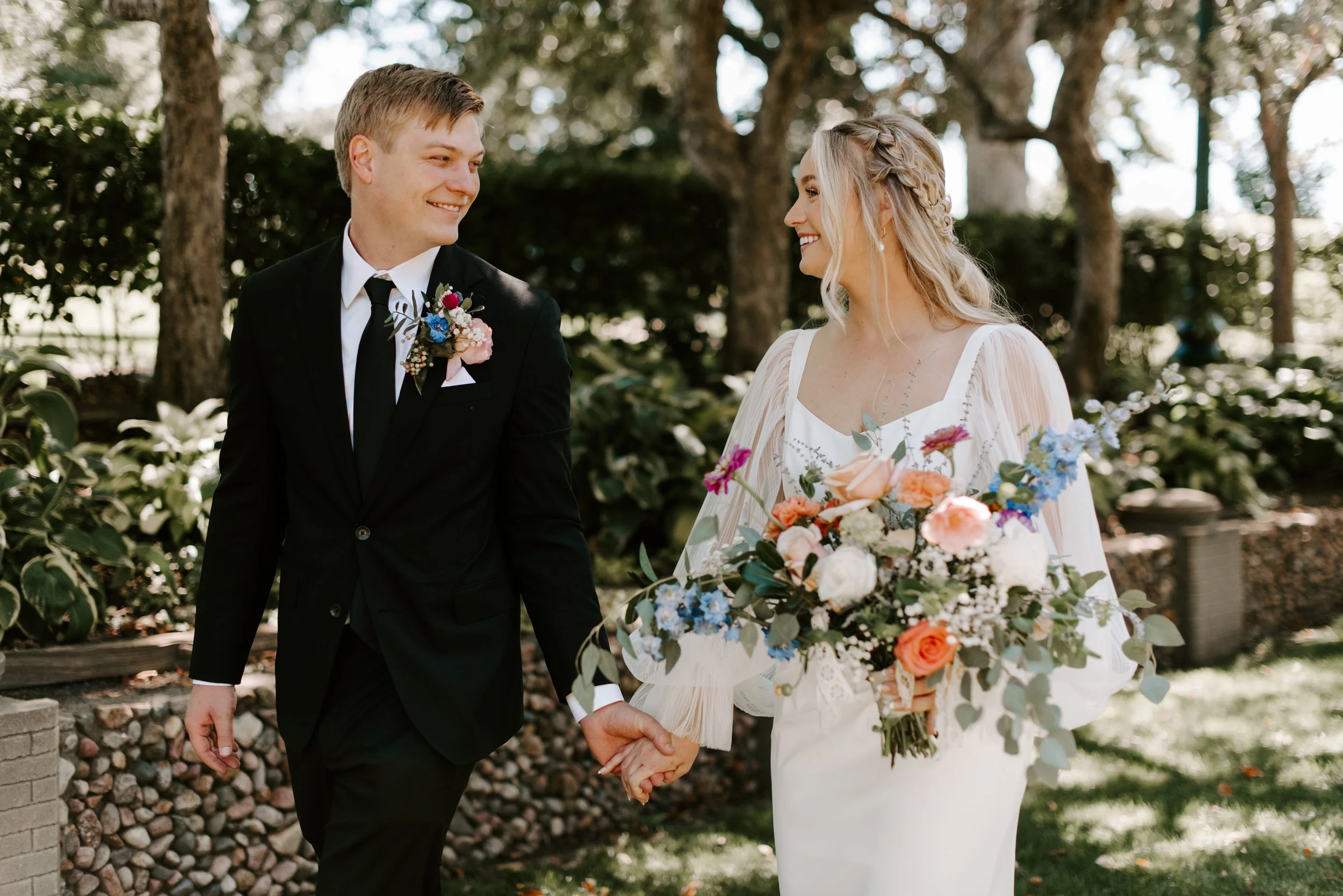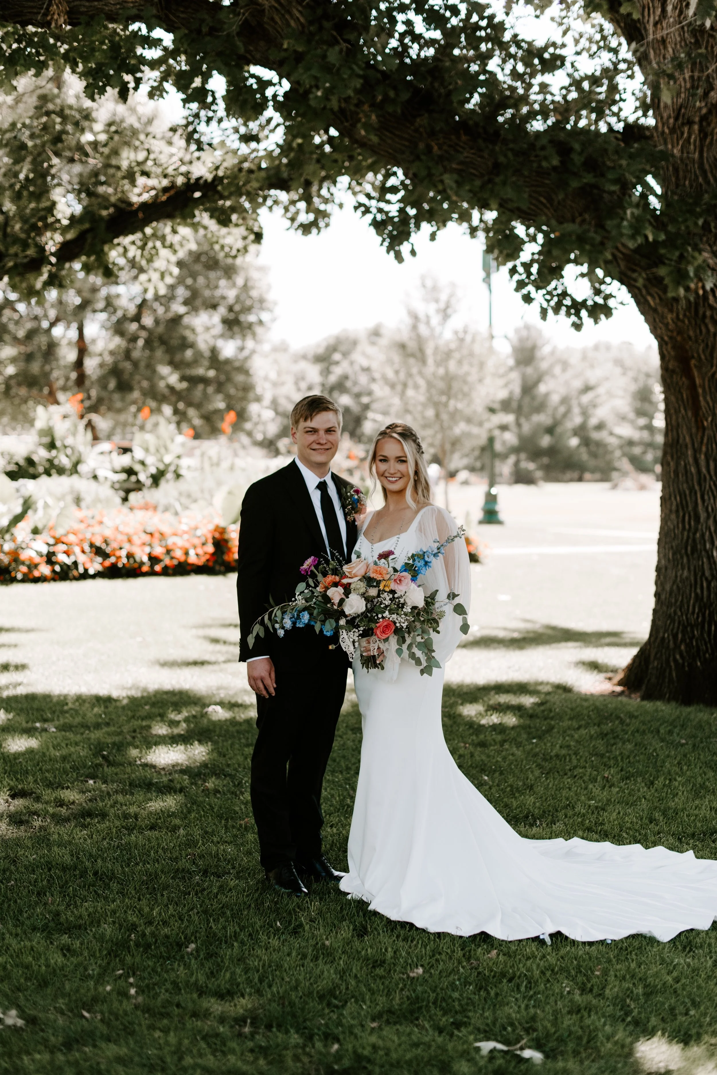 Jade and Lukeβs wedding was a colorful, whimsy celebration filled with heartfelt details and timeless charm. Their ceremony, held at the historic McKennan Park in Sioux Falls, South Dakota, was beautifully intimate, with Jadeβs bouquet wrapped in a delicate piece of her motherβs wedding dressβa sentimental touch that made the day even more special. Vintage vases from her grandmotherβs collection added a personal, nostalgic flair to the floral arrangements by Kaitlin of Brooks Floral & Co., perfectly complementing the coupleβs colorful vision.