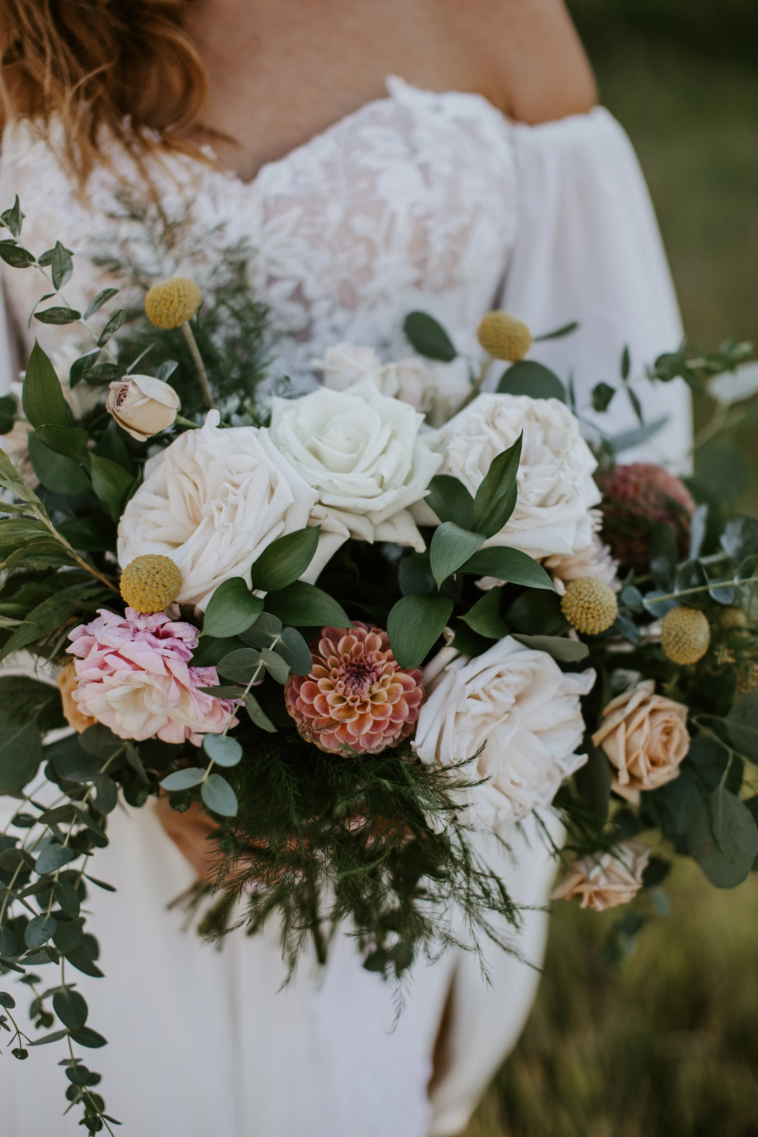 Danny and Jennaβs wedding in the breathtaking Black Hills of South Dakota was a stunning celebration of love set against the beauty of nature. Held at the charming Muley Hill Lodge, their day was filled with the perfect blend of rustic elegance and timeless romance. The lush floral arrangements by Kaitlin from Brooks Floral & Co. added a touch of whimsy, with blooms sourced from Red Daisy Farm in Denver, nestled in vintage vases that complemented the natural surroundings perfectly.