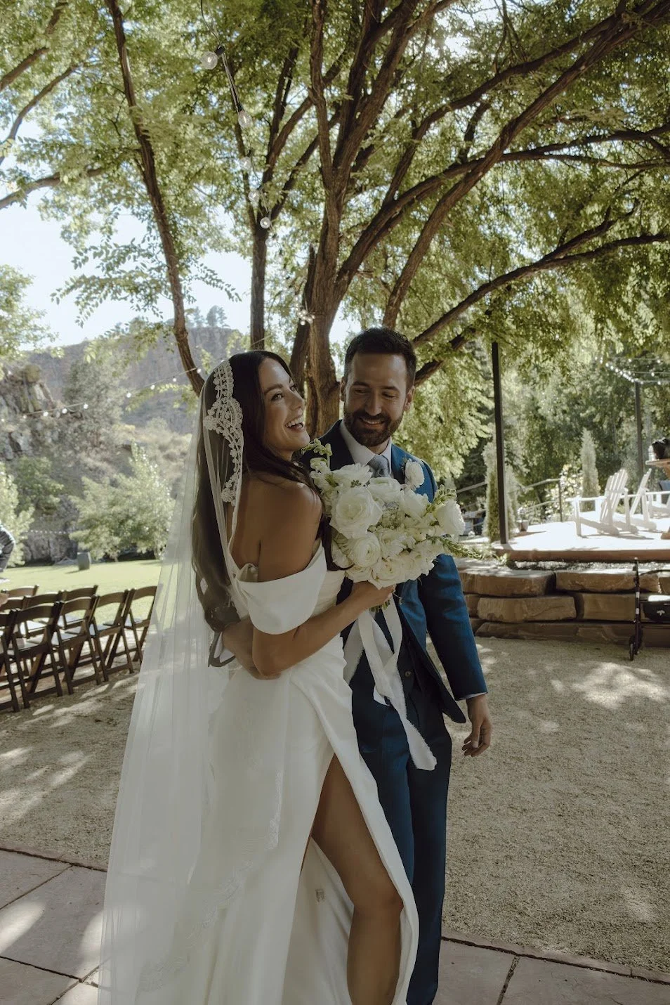 Melissa & Mattβs wedding at The Riverbend in Lyons, Colorado was all about effortless eleganceβwhite roses and soft white blooms lining a grounded ceremony meadow beneath the trees. Intimate details, from hand-tied florals to quiet moments together, set the tone for a relaxed celebration capped with joyful champagne toasts by the river.