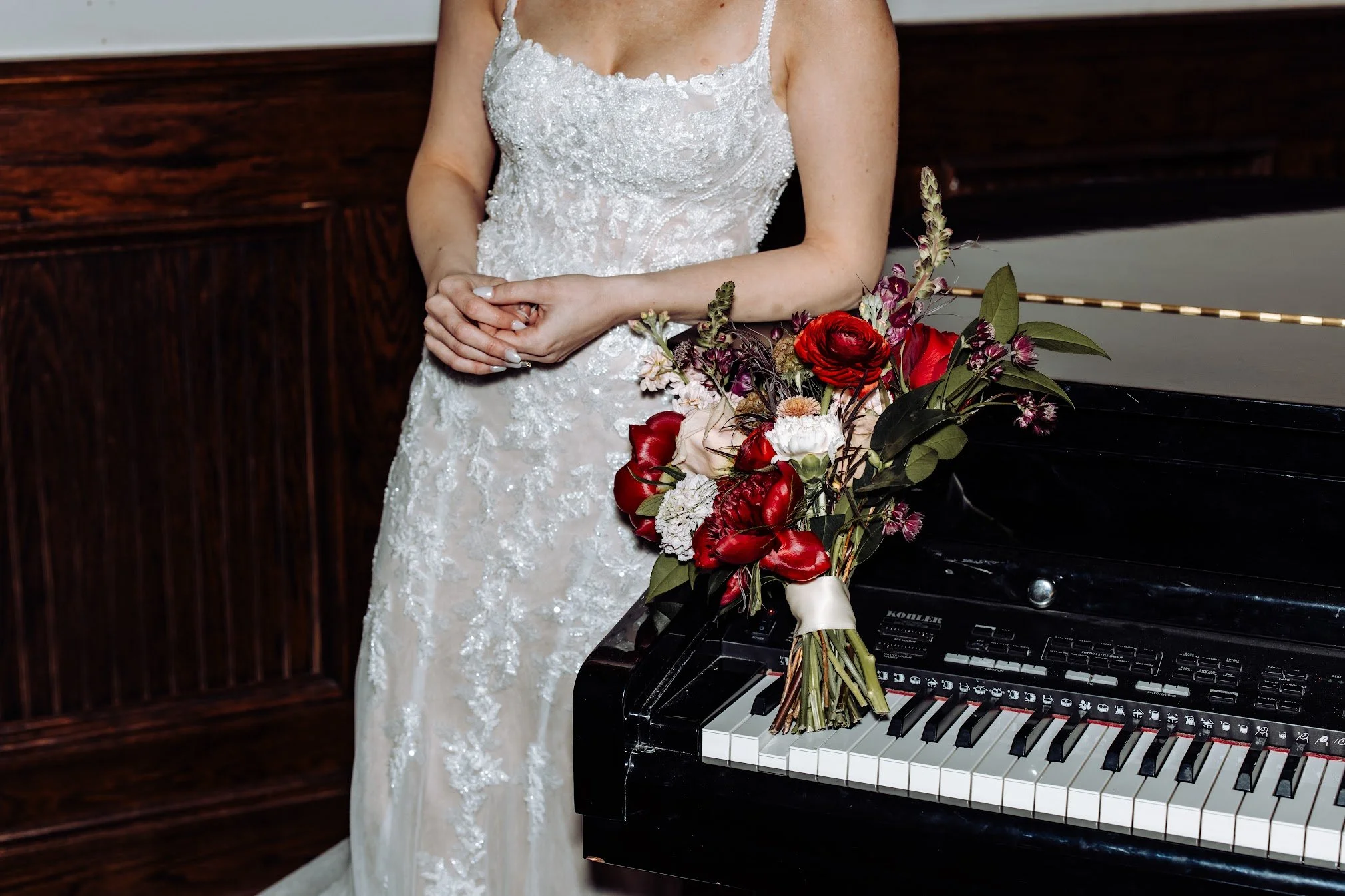 Lush, moody, and full of movement. We transformed the serene landscape of The Oaks at Plum Creek with a floral narrative of deep reds, soft creams, and unique botanical textures.