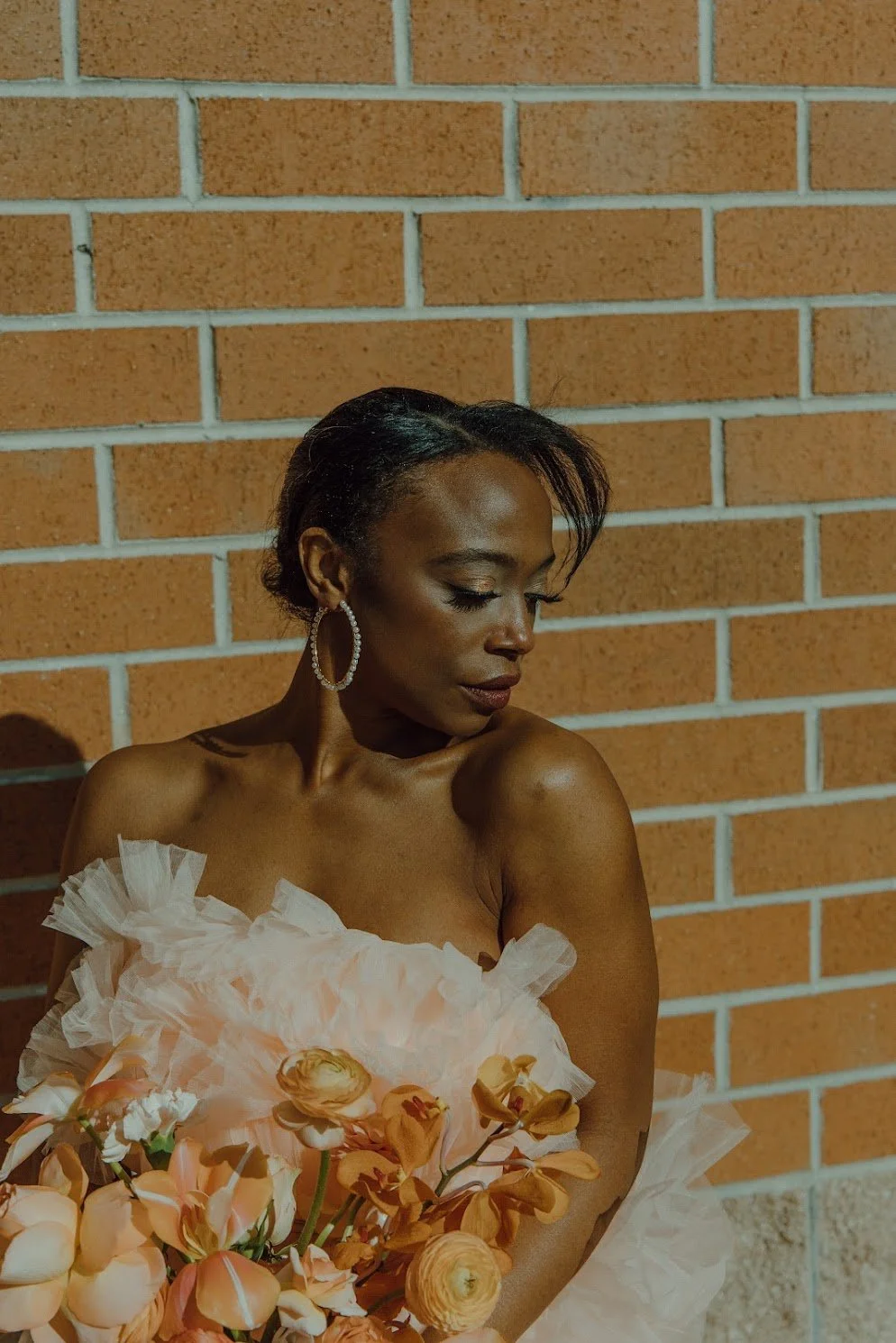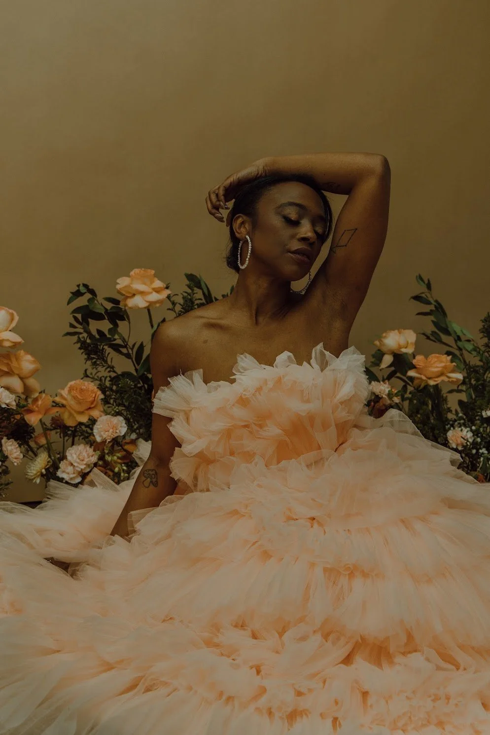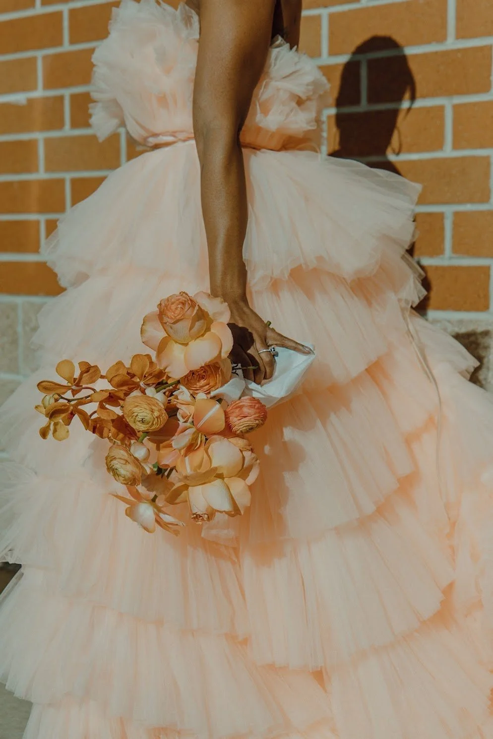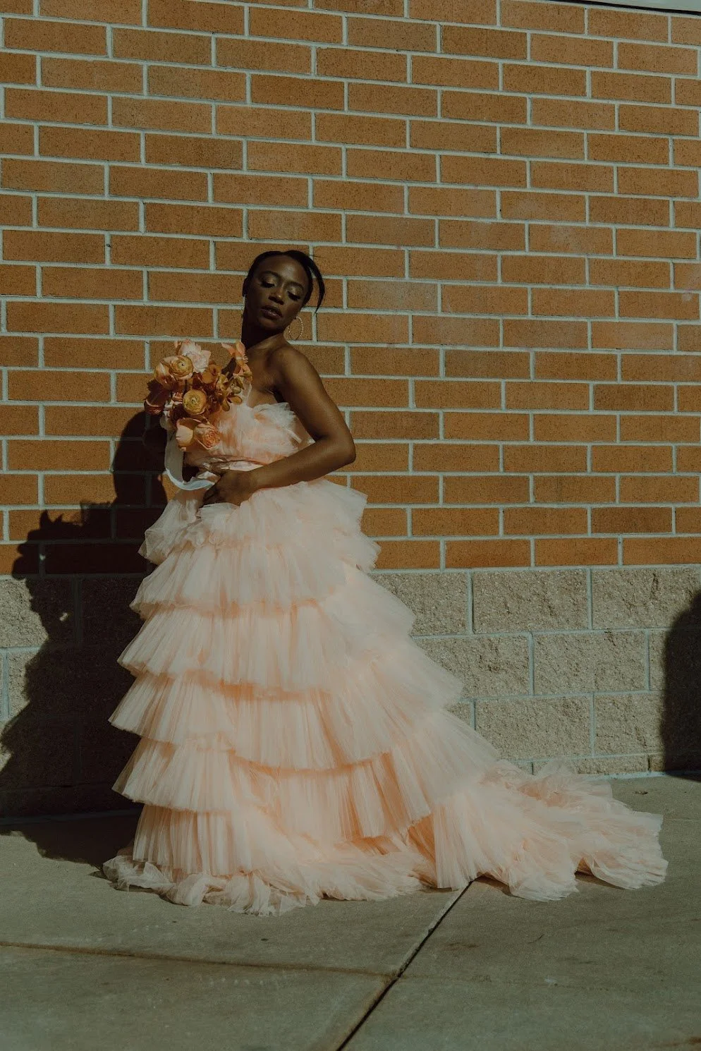 Our bridal shoot was inspired by the gentle warmth and elegance that peach tones bring to any setting. From the flowing peach chiffon dress to the intricate peach-colored floral arrangements, every detail was thoughtfully curated to reflect a sense of romance and sophistication with a Denver dream team.