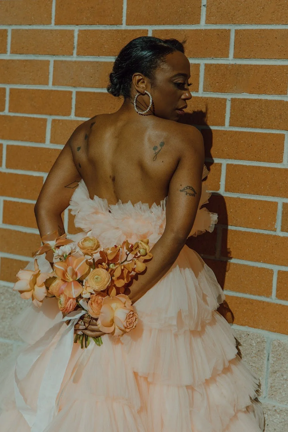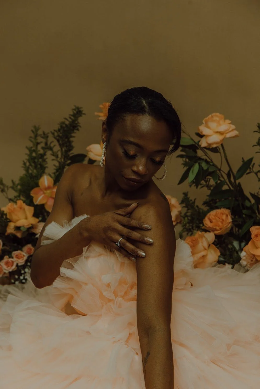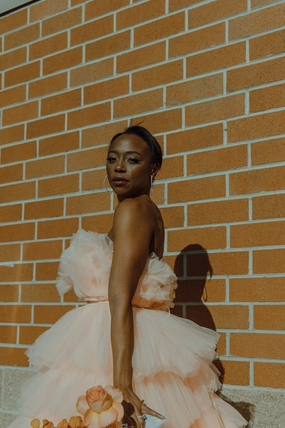 Our bridal shoot was inspired by the gentle warmth and elegance that peach tones bring to any setting. From the flowing peach chiffon dress to the intricate peach-colored floral arrangements, every detail was thoughtfully curated to reflect a sense of romance and sophistication with a Denver dream team.