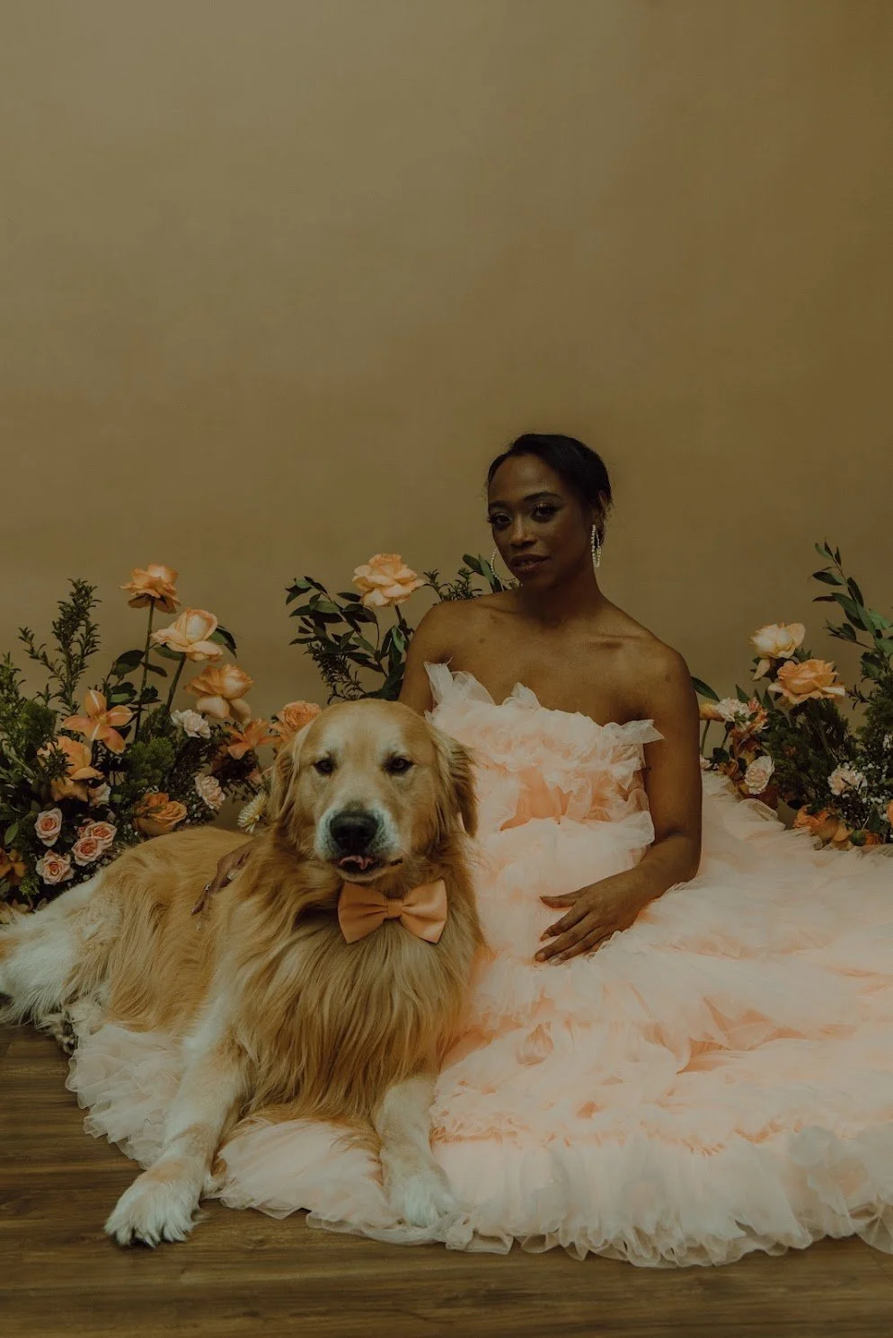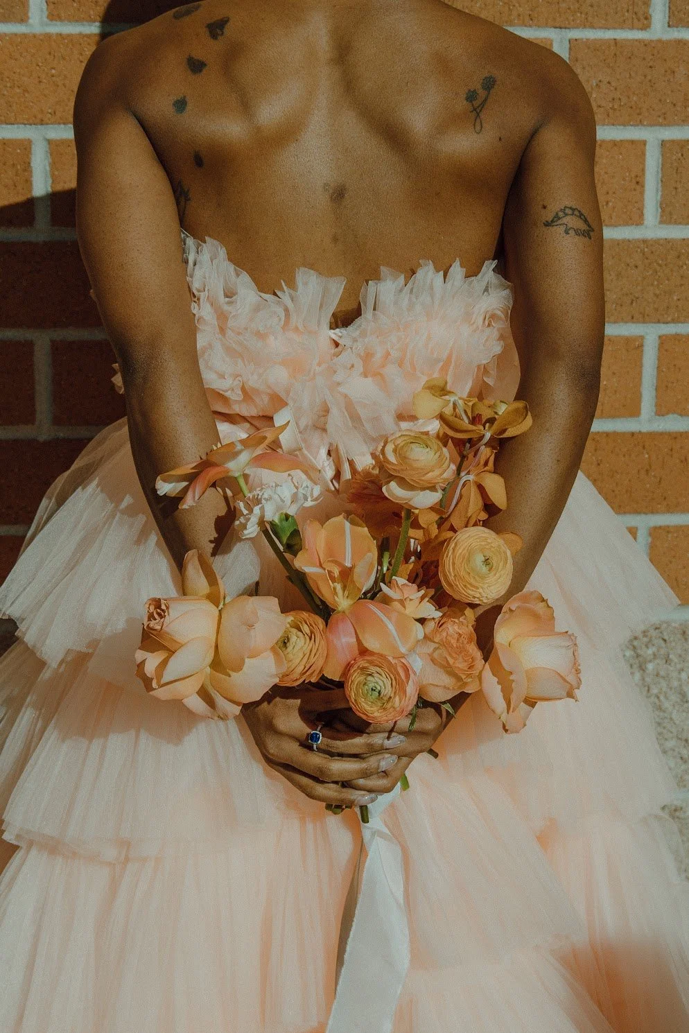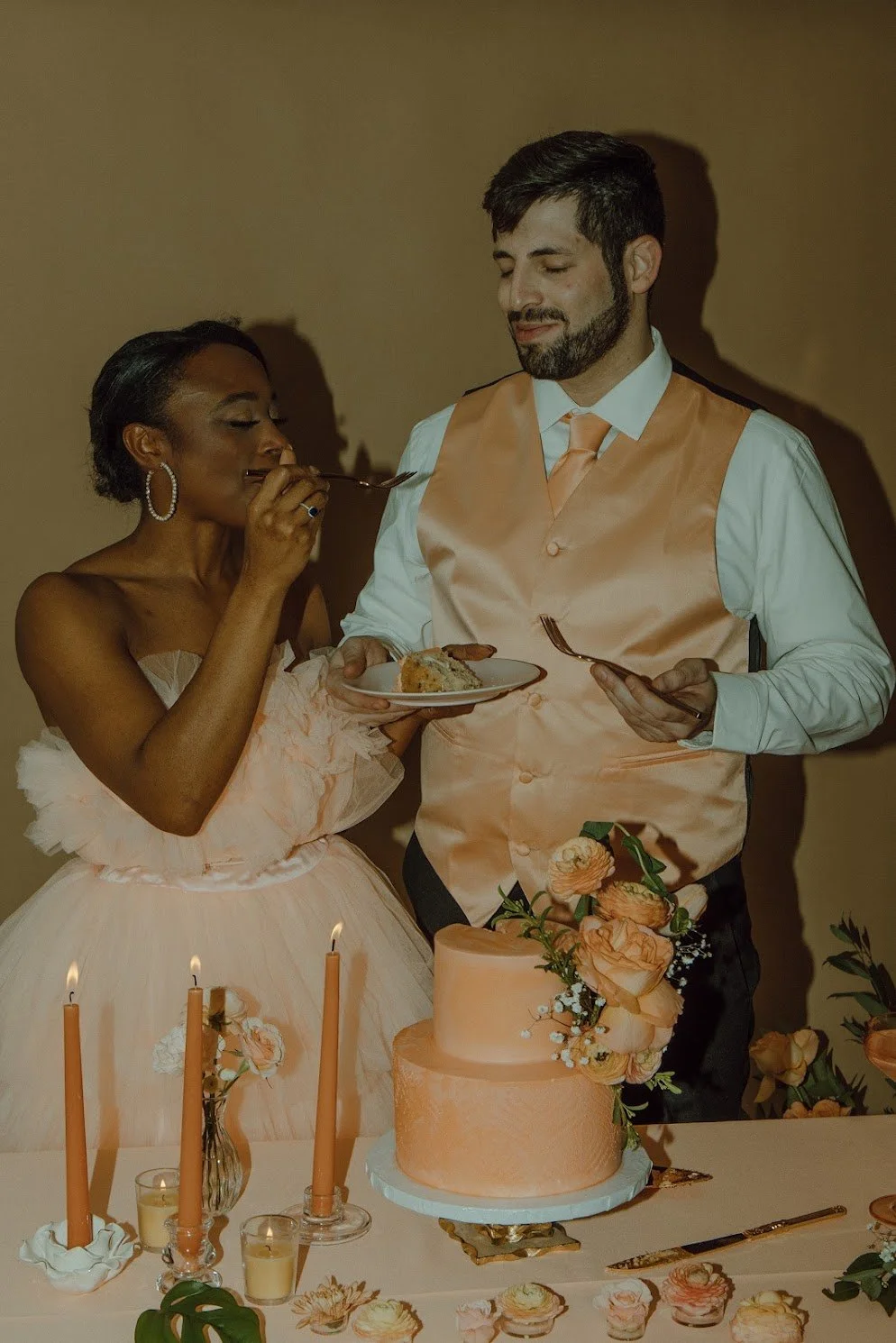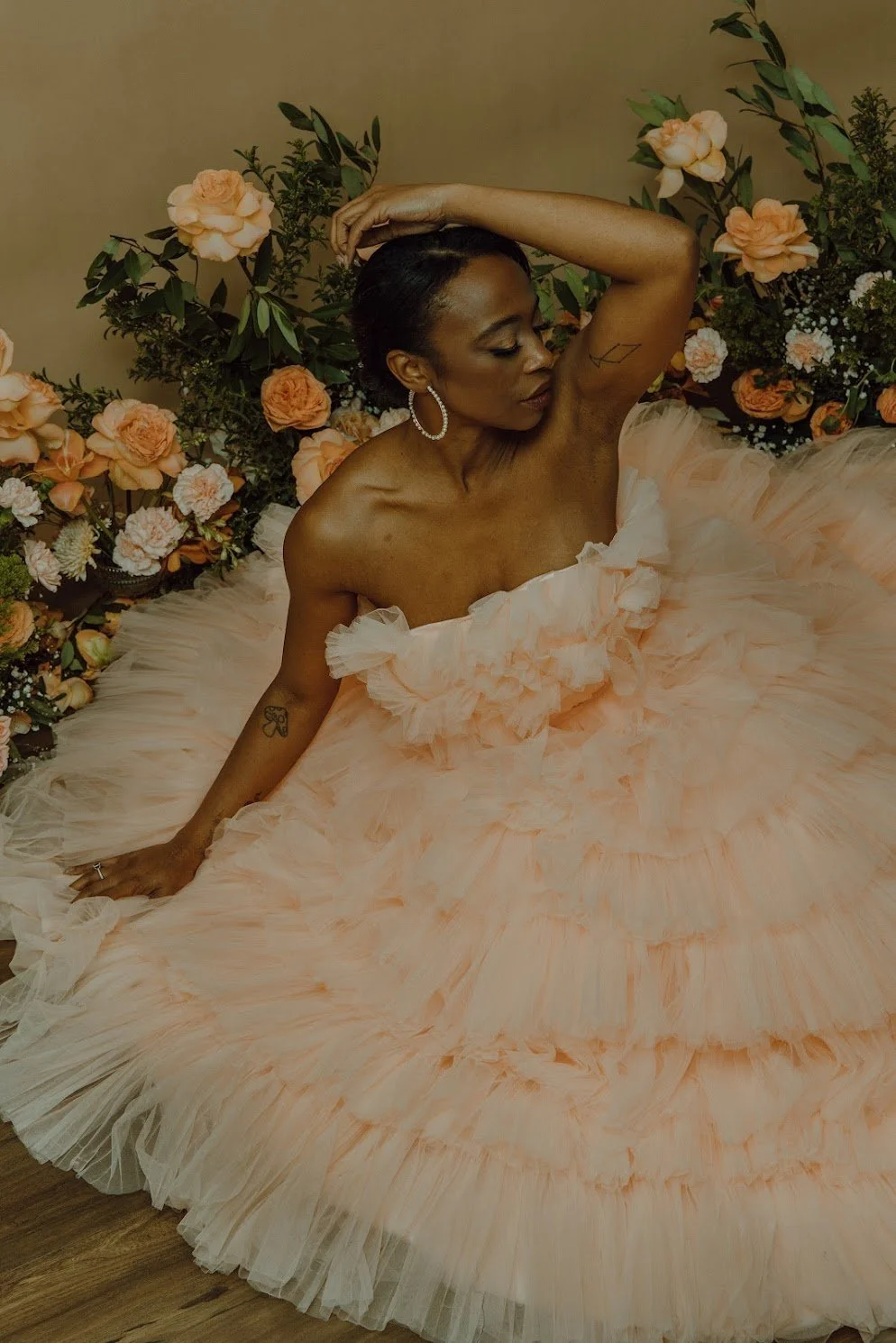 Our bridal shoot was inspired by the gentle warmth and elegance that peach tones bring to any setting. From the flowing peach chiffon dress to the intricate peach-colored floral arrangements, every detail was thoughtfully curated to reflect a sense of romance and sophistication with a Denver dream team.
